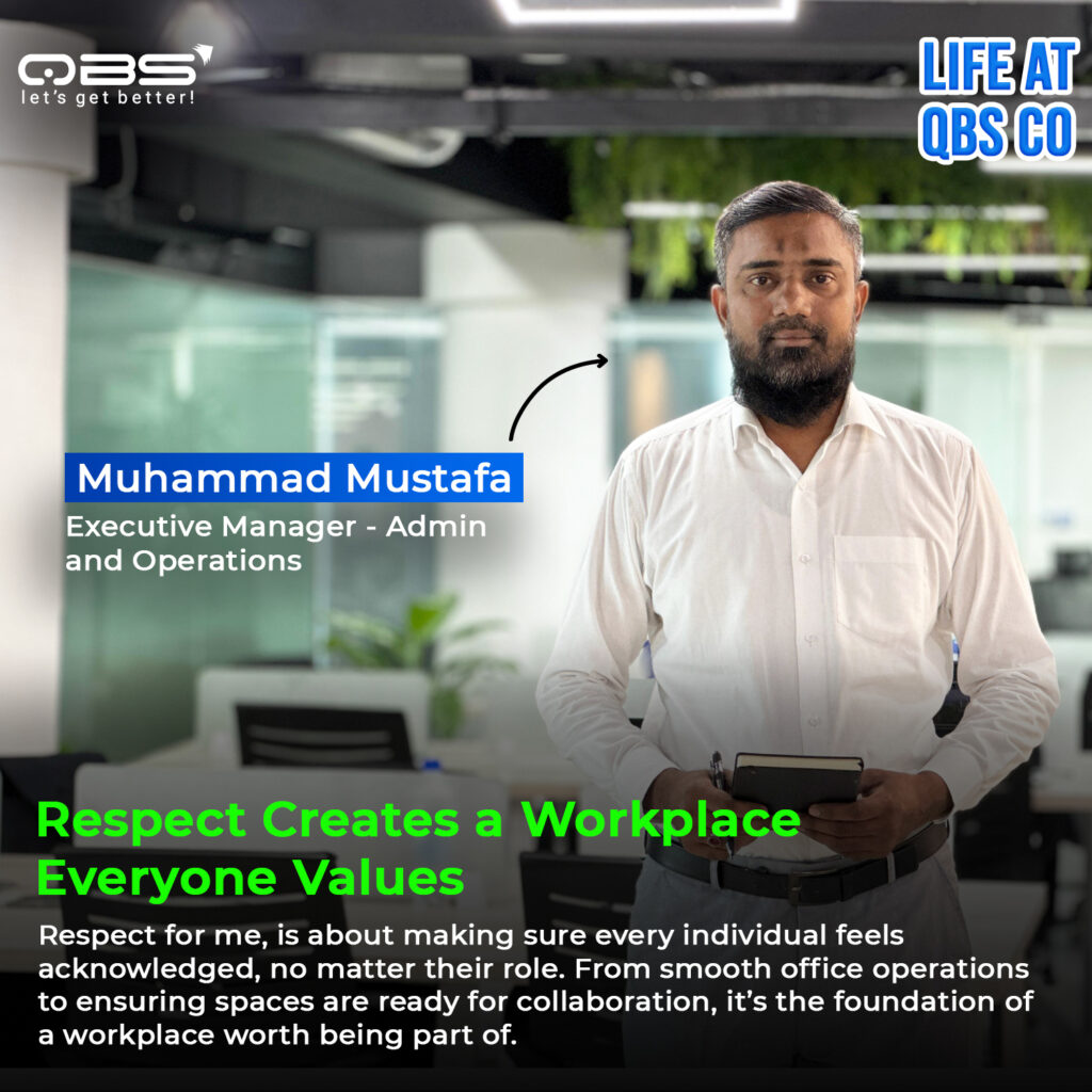 In our second 𝐕𝐚𝐥𝐮𝐞 𝐒𝐞𝐫𝐢𝐞𝐬 spotlight, 𝐌𝐮𝐡𝐚𝐦𝐦𝐚𝐝 𝐌𝐮𝐬𝐭𝐚𝐟𝐚, 𝐄𝐱𝐞𝐜𝐮𝐭𝐢𝐯𝐞 𝐌𝐚𝐧𝐚𝐠𝐞𝐫 – 𝐀𝐝𝐦𝐢𝐧 𝐚𝐧𝐝 𝐎𝐩𝐞𝐫𝐚𝐭𝐢𝐨𝐧𝐬 shares what respect means at @qbscoltd, how it shapes the admin function, strengthens teamwork, and builds an environment where everyone feels valued.